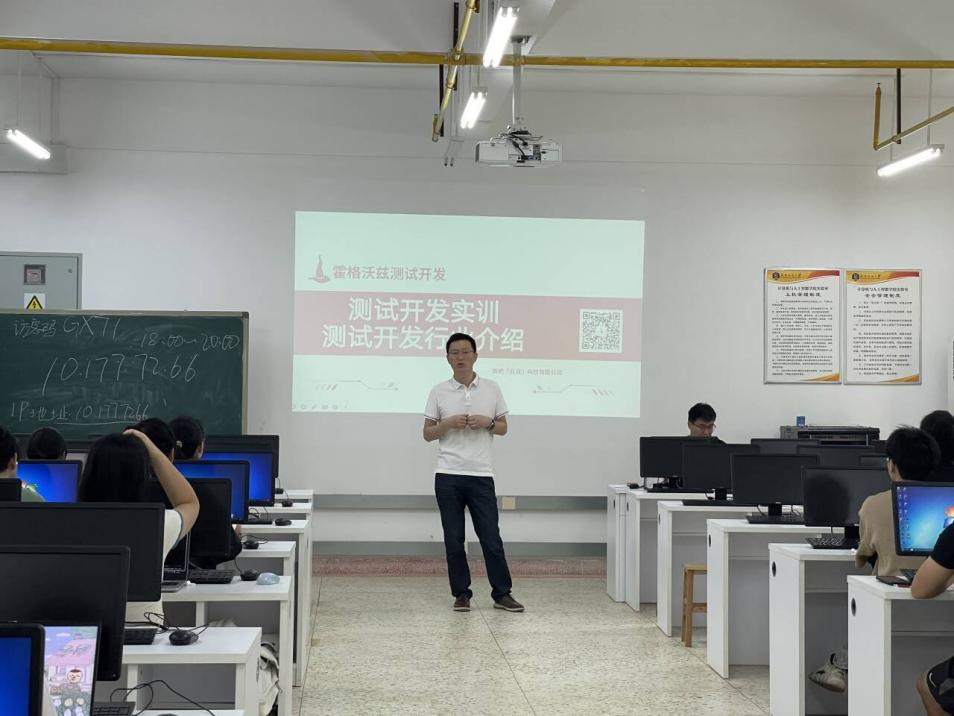 在开班仪式上,彭涛副经理发表讲话,强调实习实训是教学体系中的关键环节,对提升员工的实践能力、职业素养和就业竞争力具有不可替代的作用。他鼓励同学们珍惜此次难得的机会,将课堂所学知识与企业实际项目相结合,积极向企业导师学习,在实践中积累经验,为未来的职业发展打下坚实基础。同时,他也对武汉学链科技有限公司和测吧(北京)科技有限公司的支持表示感谢,期待双方在校企合作的道路上不断深化交流,共同为行业培养更多高素质的软件工程人才。