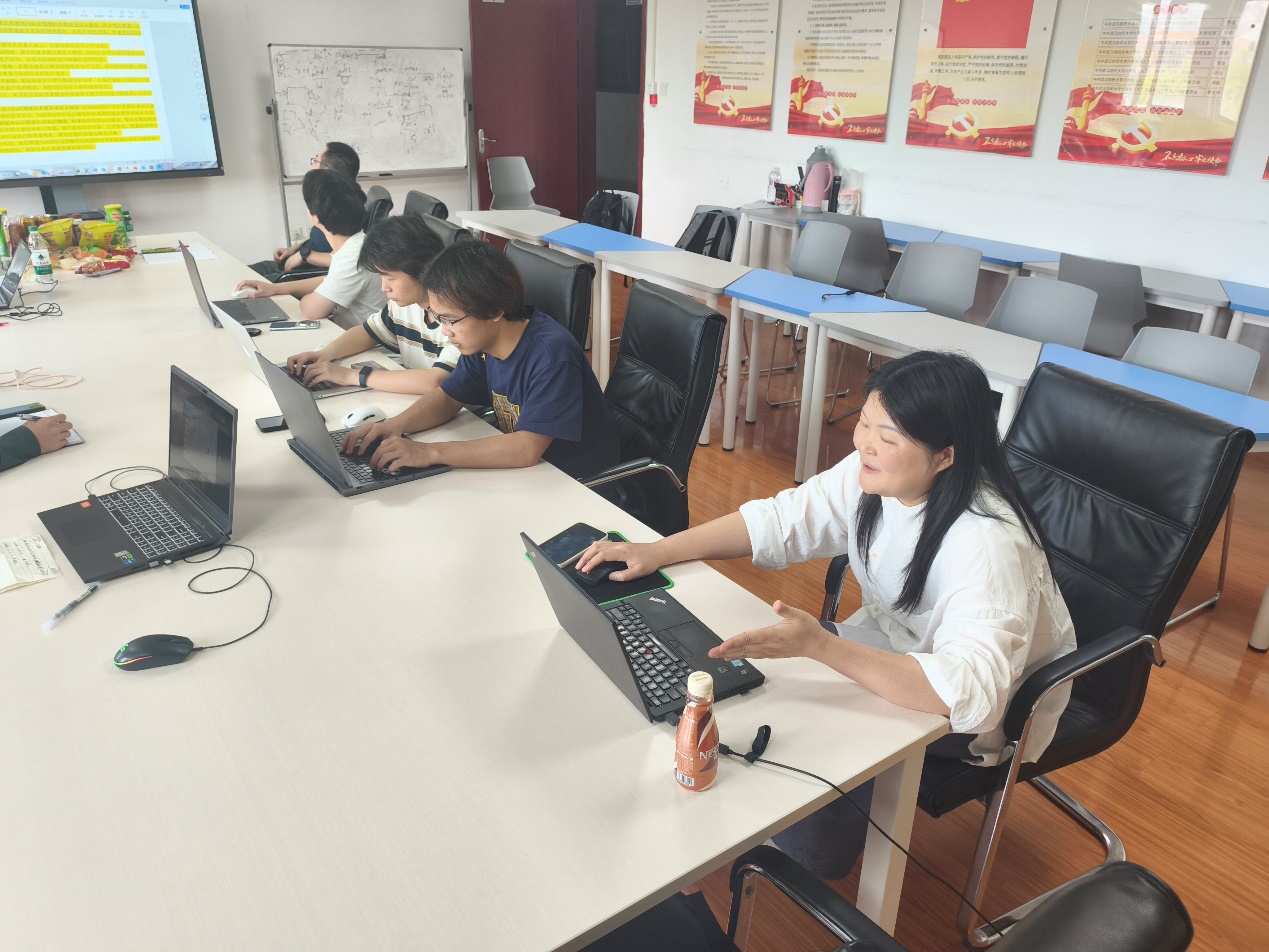 图3 万红艳老师与员工团队讨论申报书修改方案