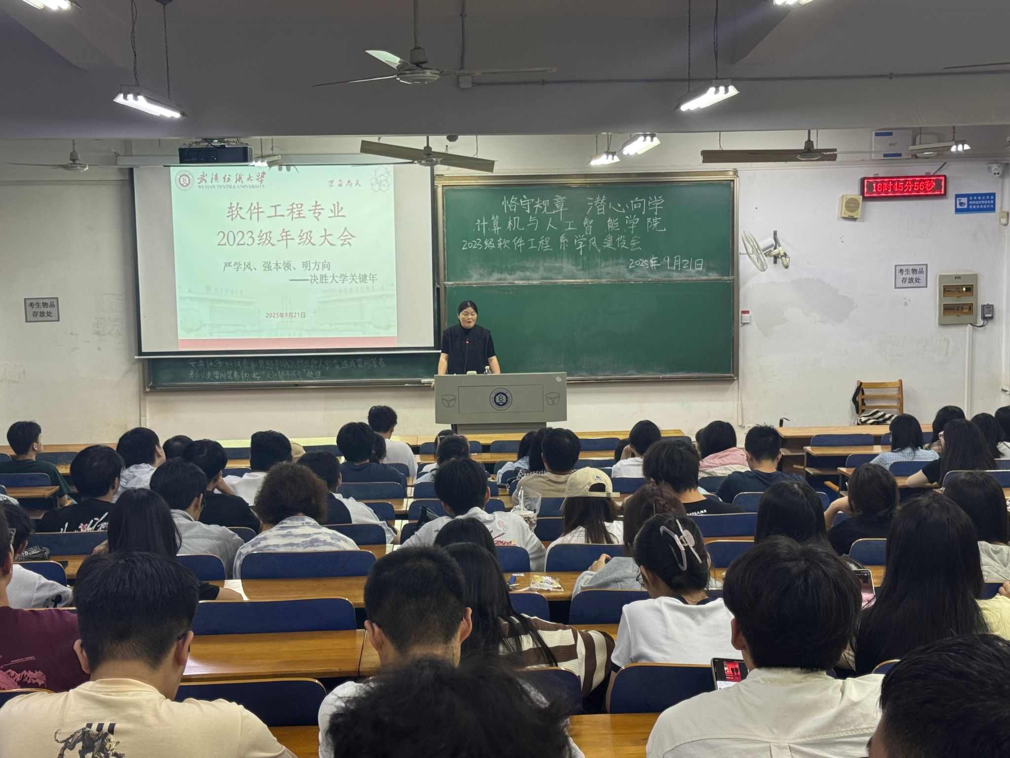 秋风送爽,新程伊始。为引导2023级员工准确把握大三学年的关键节点,强化学风建设,明确成长路径,科学规划未来,AG真人国际软件工程系于2025年9月21日晚在阳光校区3-118教室隆重召开了2023级本科生年级大会。软件工程系主任万红艳老师出席会议并作主旨讲话,辅导员易凡老师及2023级全体员工参加了会议。
